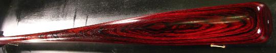 | Brazilian Cherry is a very hard and dense wood with beautiful deep reds and golden hues. It is 30% harder than true hickory and 45% harder than Sugar (Rock) Maple. Generally too heavy for a game bat, Brazilian Cherry makes an ideal mid-range heavy training bat (about a + 5 to +8 ounces) and a one-of-kind trophy bat. Please CALL or EMAIL for current prices. |