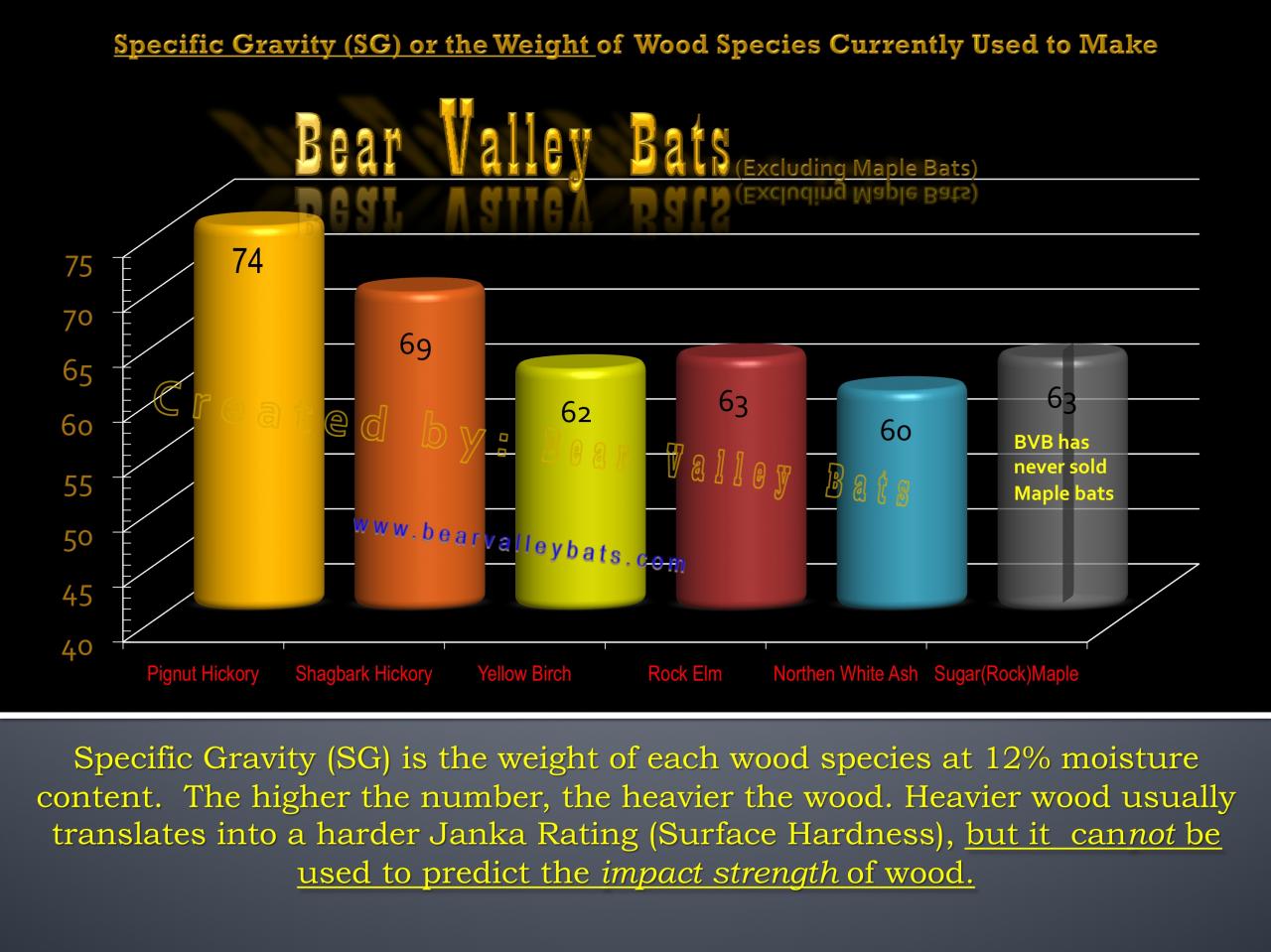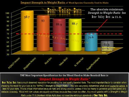 The minimum for Bear Valley Bats is .60 which is the average for true Northern White Ash. This represents the density of wood as well.